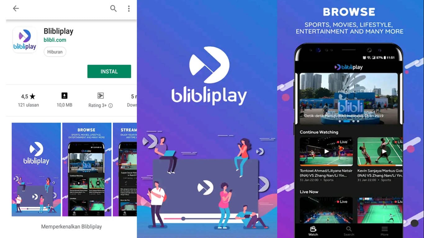 Kamu bisa live streaming menggunakan aplikasi yang bernama “BlibliPlay” milik Blibli.com, sebuah aplikasi video on-demand yang menyajikan siaran langsung kompetisi olahraga bulu tangkis Blibli Indonesia Open 2019.